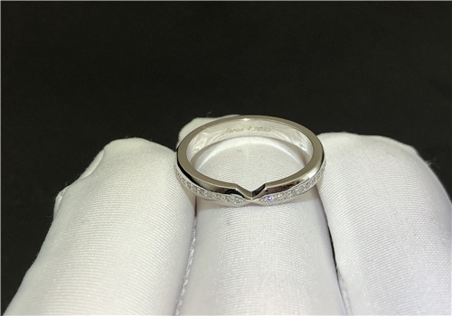 With its elaborate V-shaped detail design, this nested diamond ring can be elegantly matched with any engagement ring. One diamond ring can be worn alone as a wedding ring, or two on top of each other for a modern look.