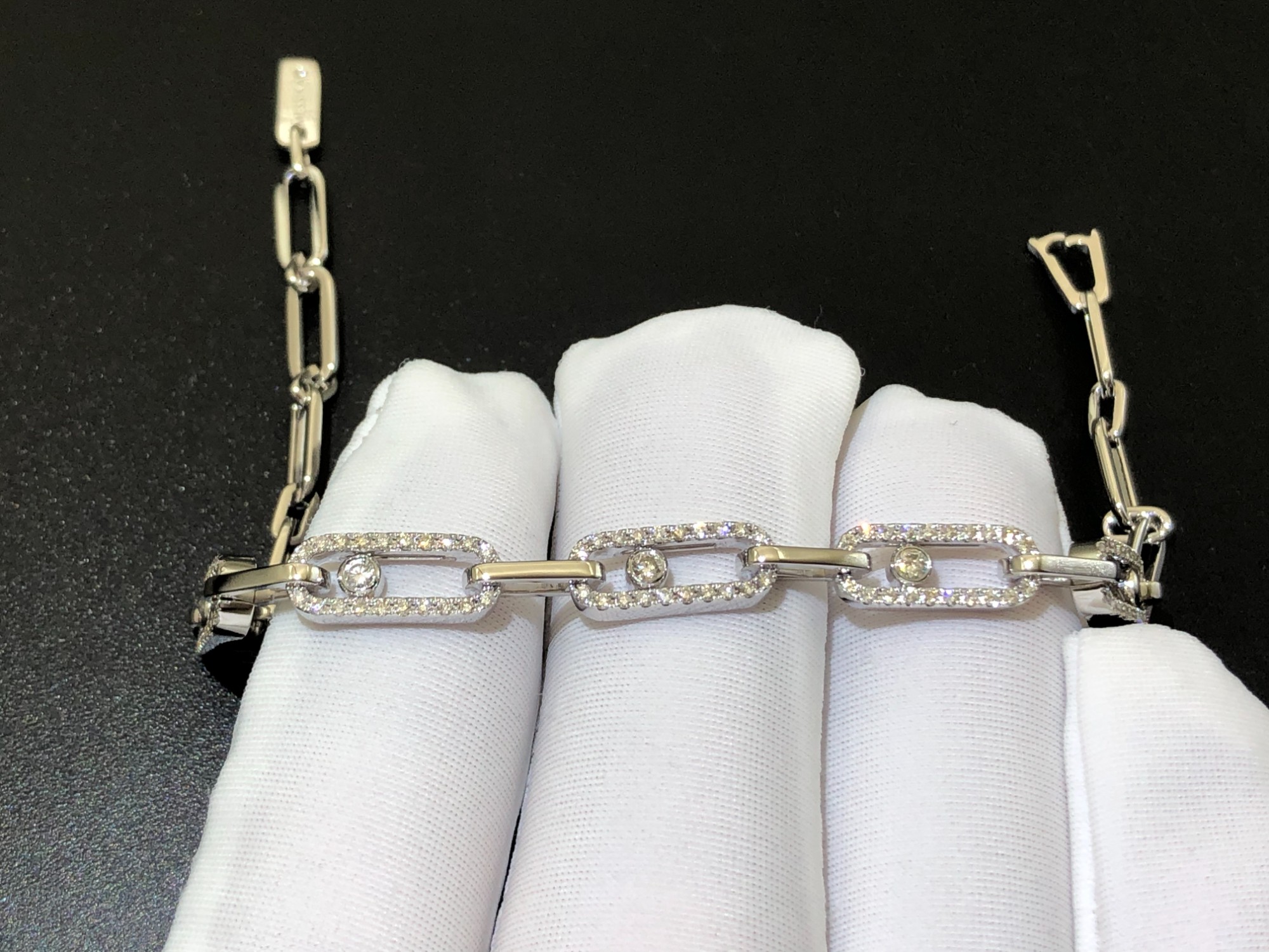 Multi-loop platinum diamond bracelet
