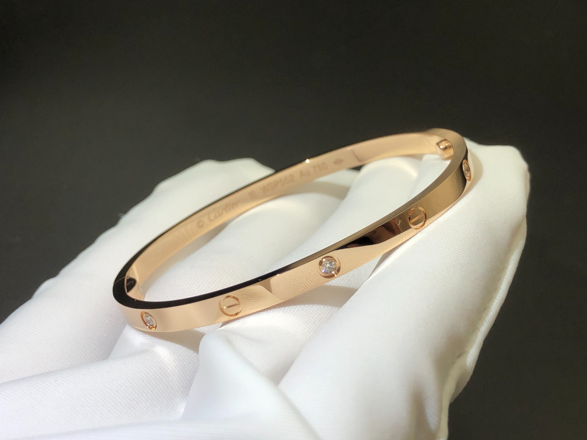 LOVE bracelet, small size, set with 6 diamonds, 18K rose gold