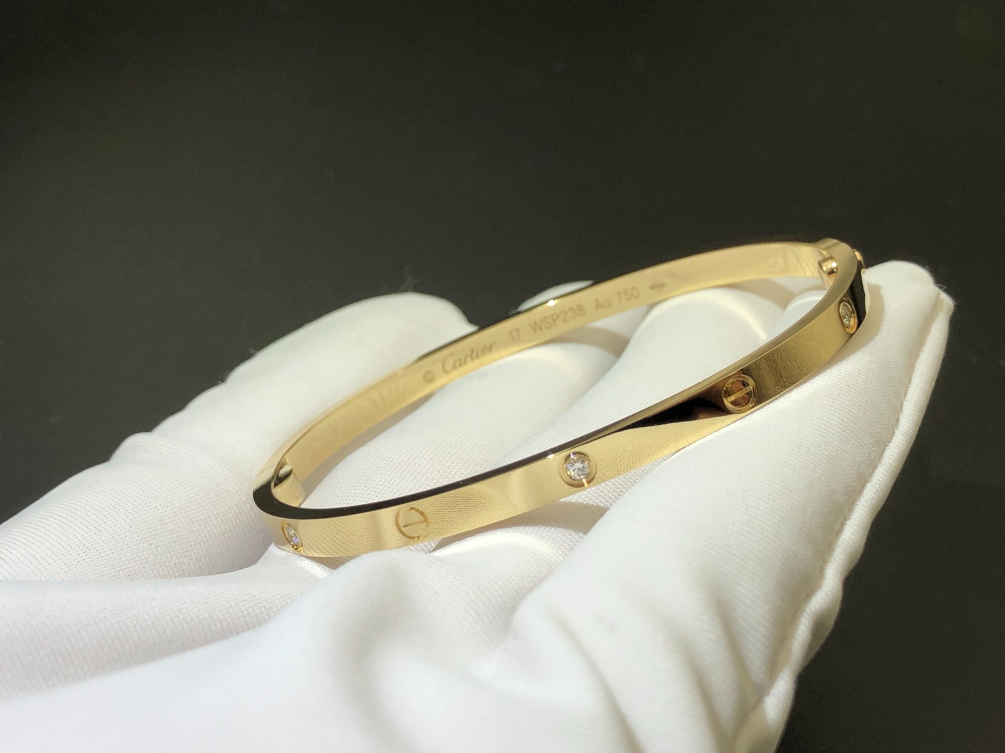 LOVE bracelet, small size, set with 6 diamonds, 18K gold