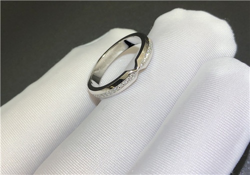 With its elaborate V-shaped detail design, this nested diamond ring can be elegantly matched with any engagement ring. One diamond ring can be worn alone as a wedding ring, or two on top of each other for a modern look.