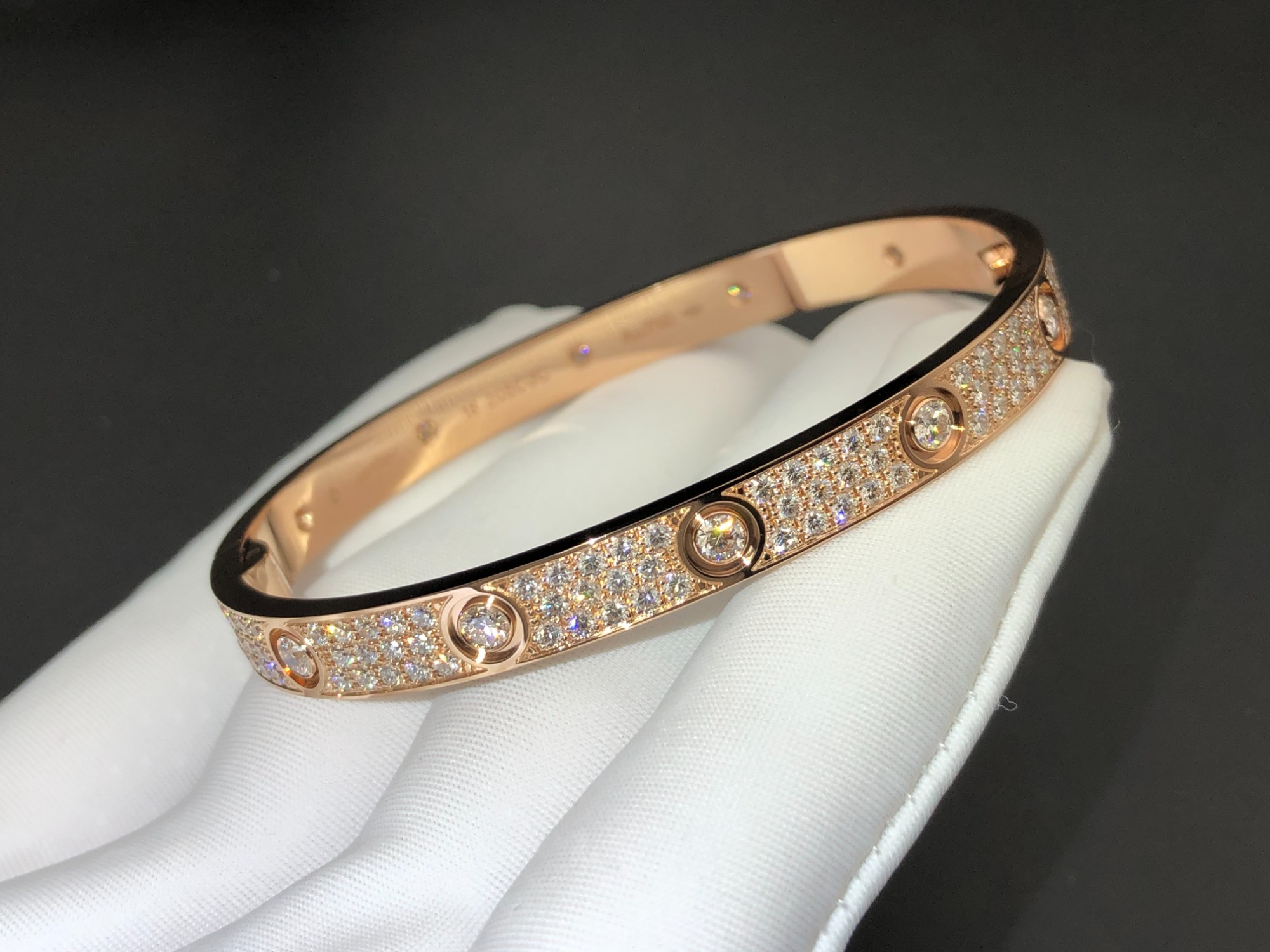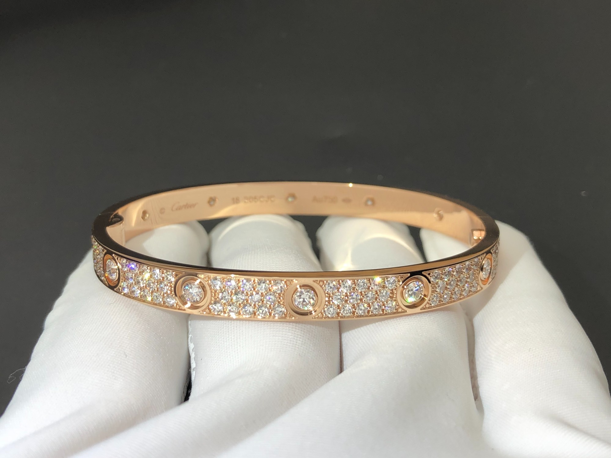 LOVE bracelet, classic style, pavé diamonds, screws set with 10 diamonds, 18K rose gold