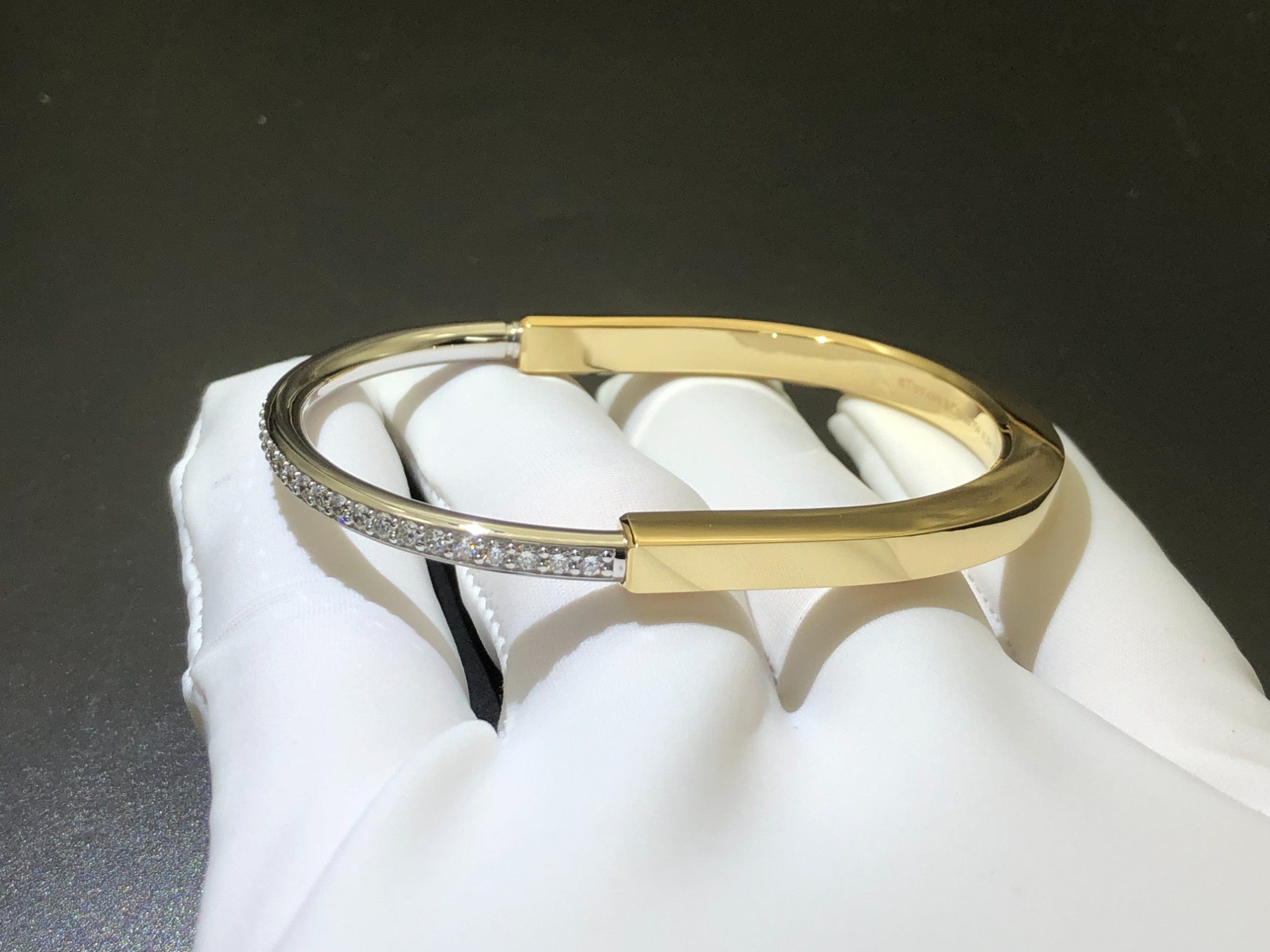 Gold and 18K white gold half pavé diamonds