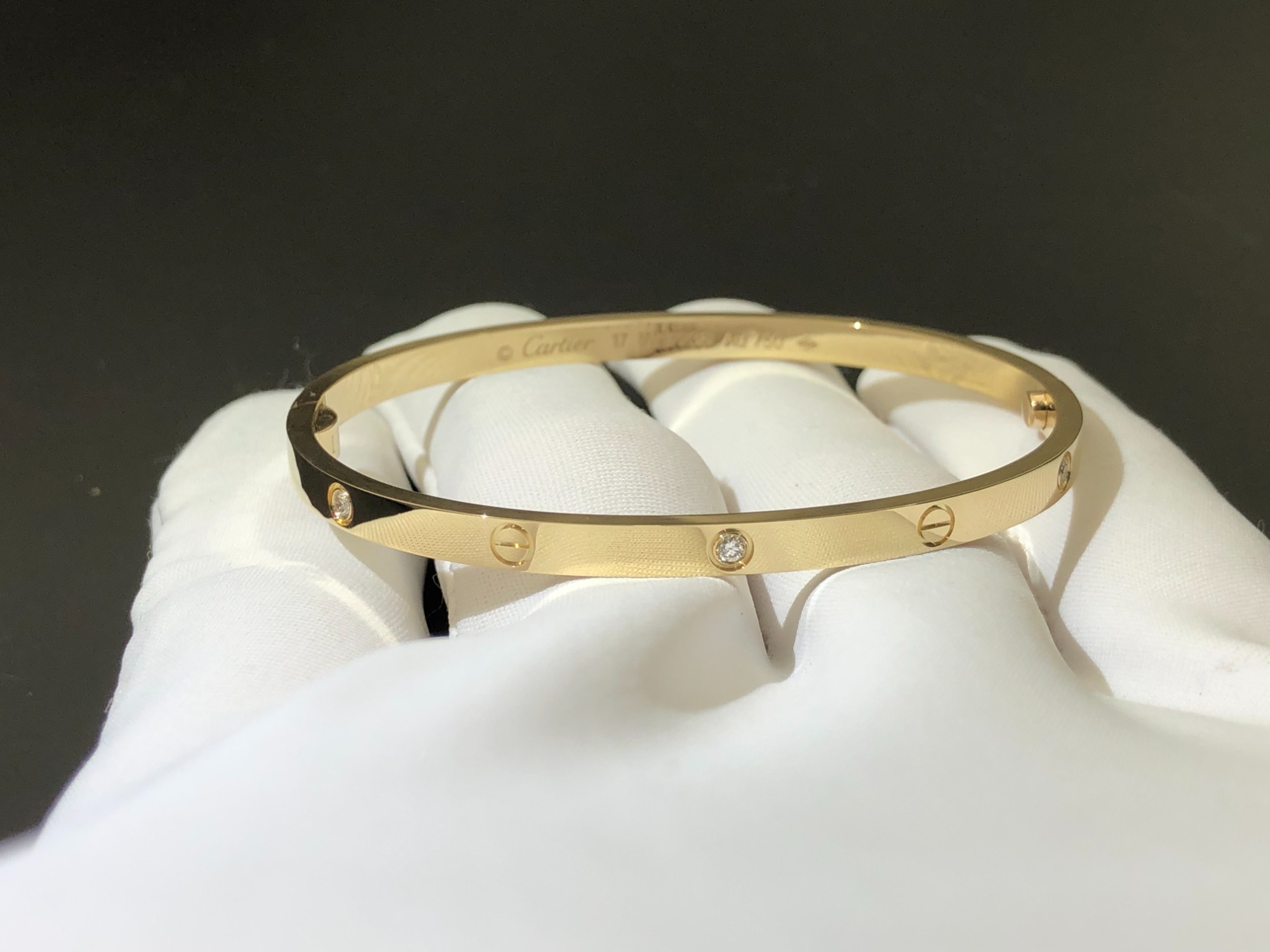 LOVE bracelet, small size, set with 6 diamonds, 18K gold